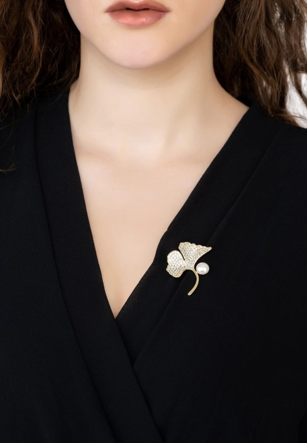 Introducing our Ginkgo Leaf And Pearl Brooch in Gold, a piece that seamlessly blends nature’s beauty with luxurious design. Crafted from 925 sterling silver and plated with 18-carat gold, this brooch offers the best of both worlds. At its core sits a radiant pearl, lending an air of timeless elegance to the intricately designed Ginkgo leaf.