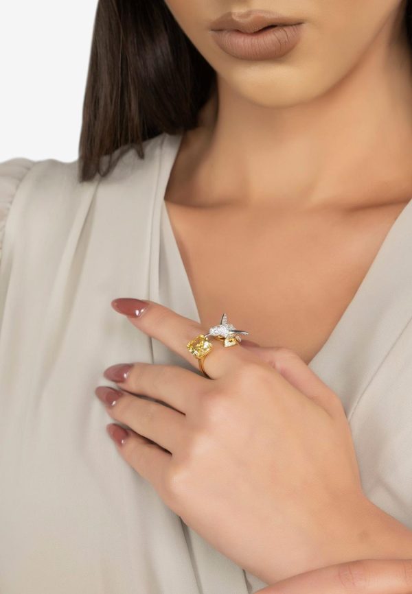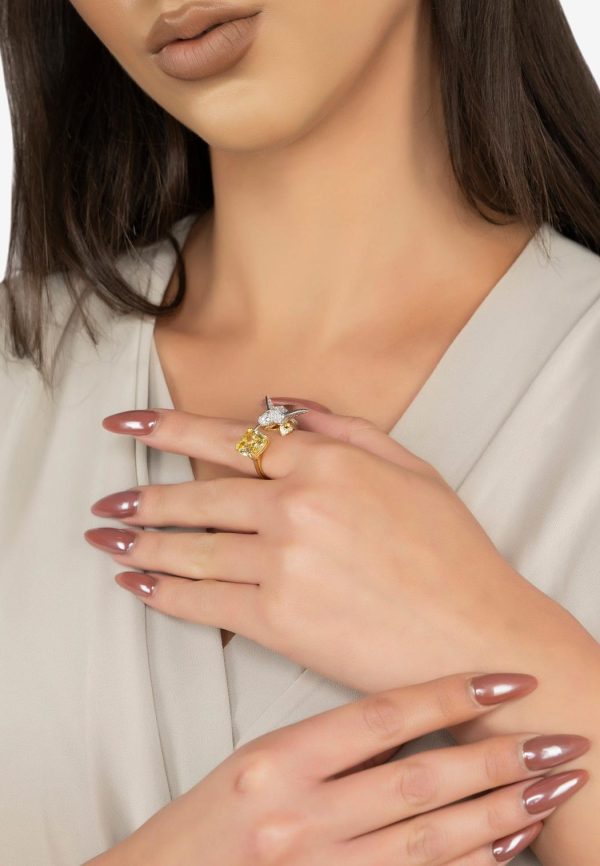 Whether you’re adding a touch of golden glamour to your everyday style or making a bold statement for a special occasion, the Hummingbird Yellow Topaz Cocktail Ring will captivate and enchant, ensuring that all eyes are drawn to its radiant charm.