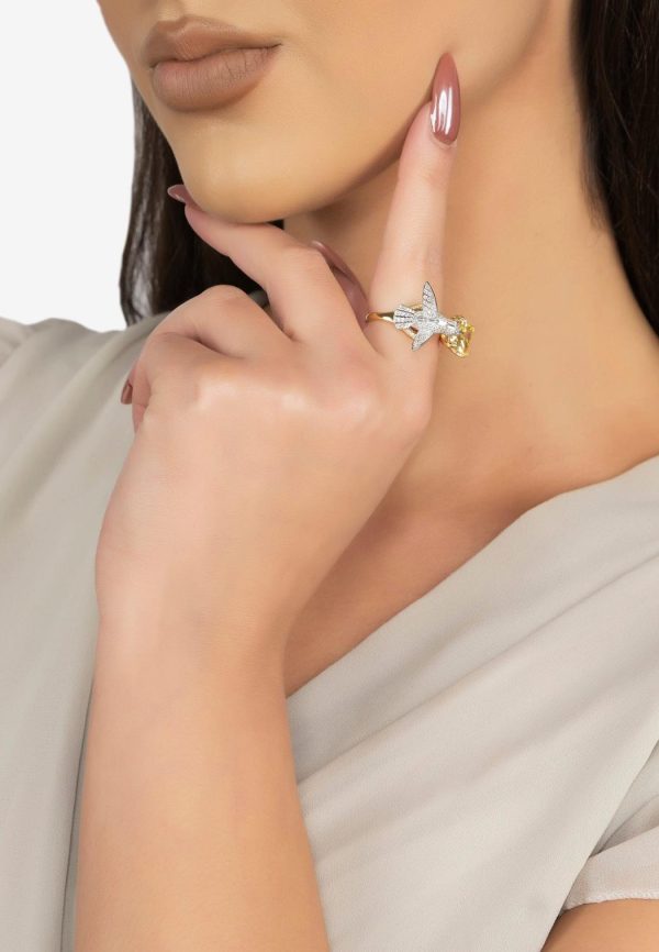 An exquisite blend of nature’s elegance and fine craftsmanship, the Hummingbird Yellow Topaz Cocktail Ring is a stunning tribute to the beauty of flight and light. Handcrafted in 925 sterling silver and dipped in radiant 18ct gold, this ring exudes a rich warmth, while the hummingbird itself remains untouched in sterling silver, symbolizing the purity of its graceful design.