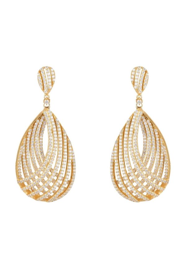 Designed with a three dimensional open lattice teardrop pattern, suspended from a smaller teardrop stud top, all adorned with beautiful zircons that sparkle and glisten with every natural movement created when wearing. These earrings are sure to leave you feeling mesmerised and captivated!