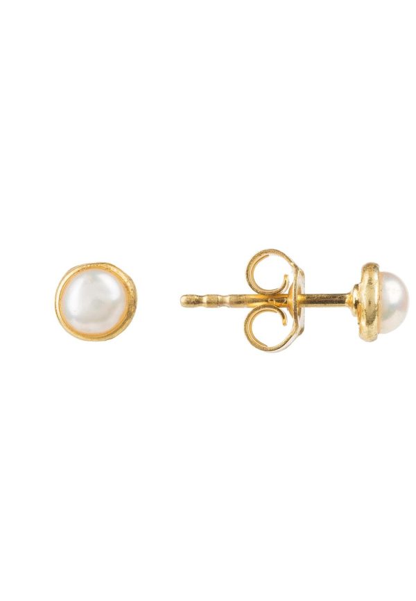 This pierced stud feature a natural pearl, hand set in 925 sterling silver and dipped in luxurious 22ct gold. Measuring 4mm x 4mm and weigh 0.65grams.