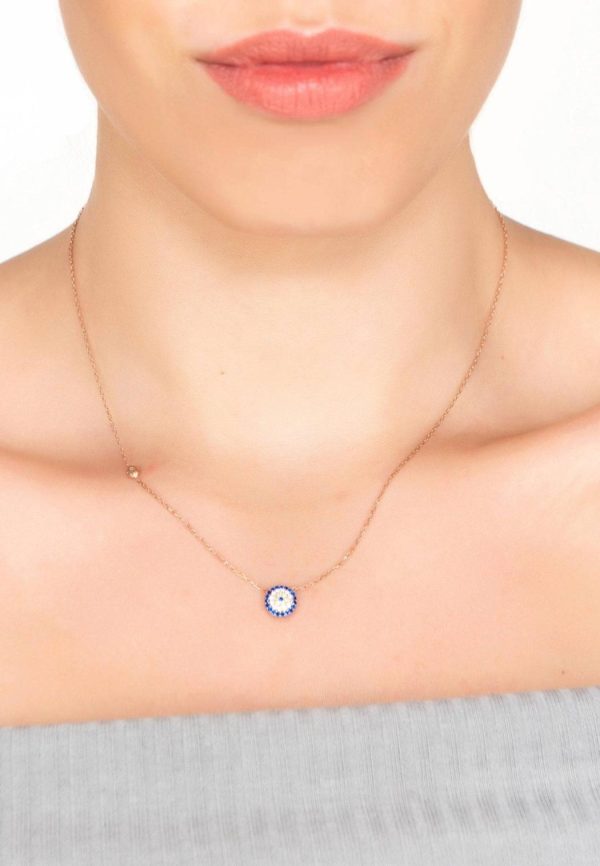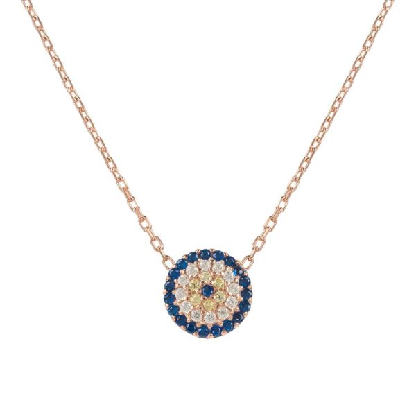 Looking for a chic and stylish necklace that you can wear every day? Look no further than our Evil Eye Necklace in rosegold! This beautiful piece is perfect for those who love talismans, amulets, and other charms. Whether you wear it alone or layer it with other pieces for a more dramatic look, this necklace is sure to add a touch of flair to any outfit. Handcrafted from 925 sterling silver and dipped in 22ct rosegold, this necklace features dazzling multifaceted blue and white zircons for a touch of sparkle. It’s also finished with a lobster clasp and size adjuster, with a length from 40-45cm, making it easy to find the perfect length for you. And weighing just 2.3grams can be worn comfortably all day long.