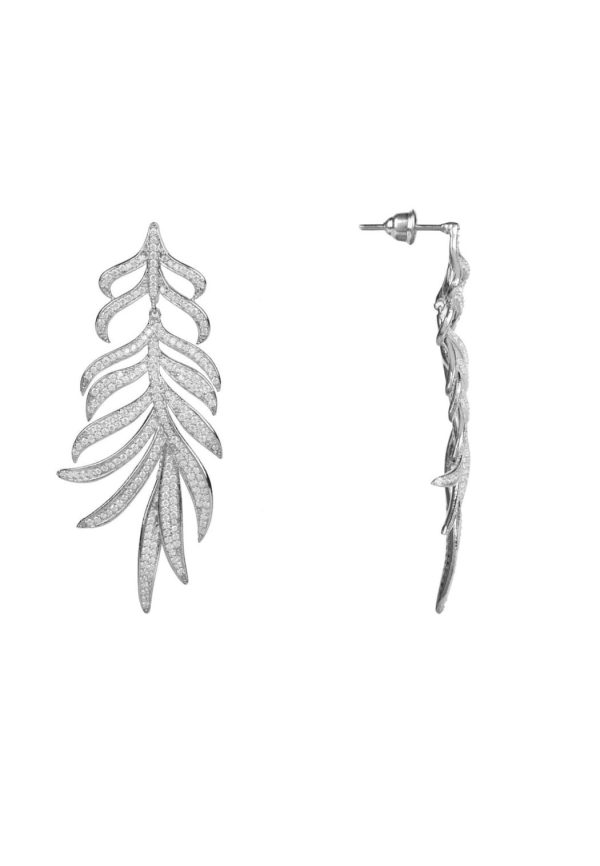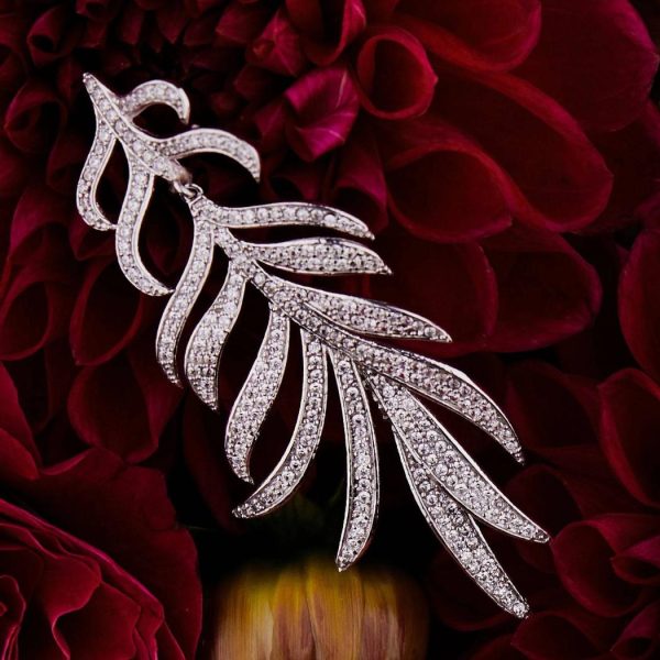 Look as beautiful as a tropical paradise with these striking Feathered Leaf Statement Drop Earrings! An ultra-stylish statement piece, this handcrafted design has rows of sparkling cubic zirconia`s set perfectly within a leaf shaped pattern for an elegant and nature inspired look. For added natural movement, there’s a link beneath the first two fixed fronds of the leaf.