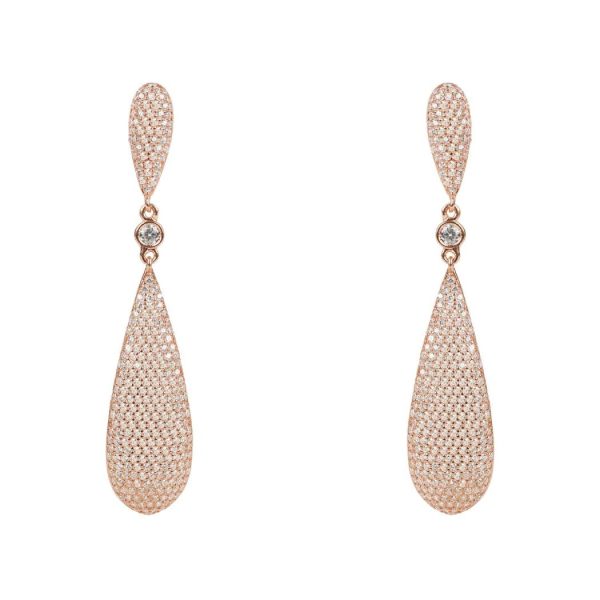 Our Latelita Coco`s Long Drop Earrings Rosegold are a truly elegant statement jewellery creation. Designed with a brilliant-cut elongated drop, these earrings are suspended from a similar-shape surmount and feature an array of sparkling white zirconia stones. The overall effect is an elegant and timeless pair of earrings that will take you from desk to dinner with ease.