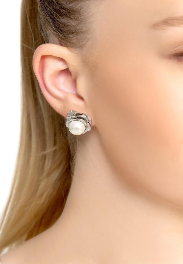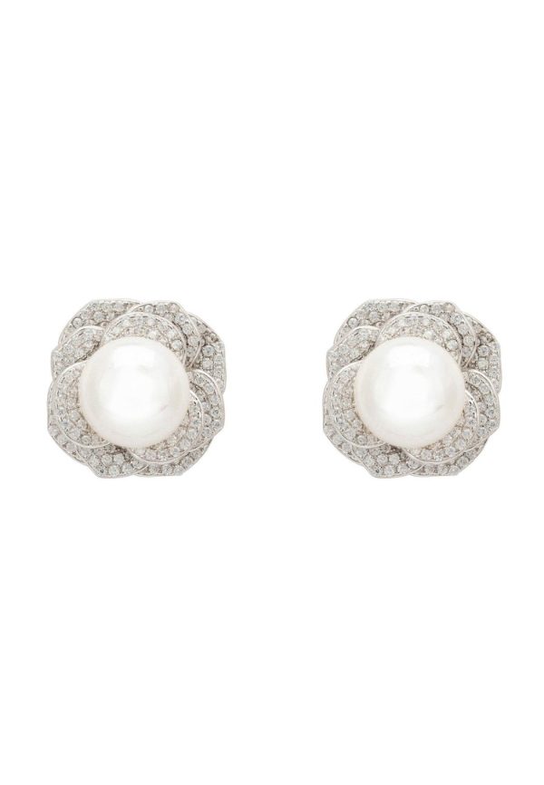 Introducing our gorgeous Pearl And Rose Petals Stud Earrings Silver! Handcrafted from 925 sterling silver, these beautiful earrings feature a flower design, its petals sparkling with intricate zirconia detailing. At the centre sits a classic pearl, perfect for brides who want to combine traditional elegance and modern style on their big day.