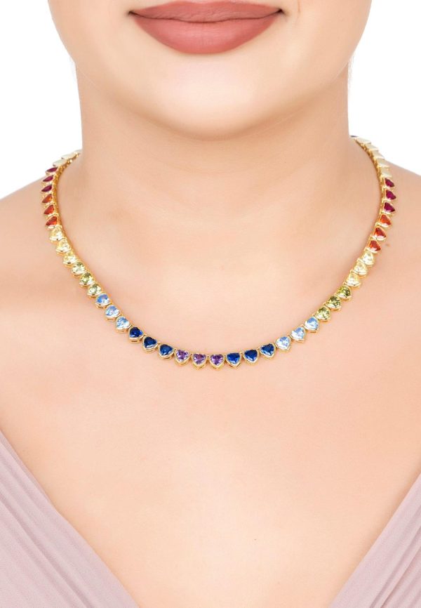 Latelita Tennis Necklaces | Necklaces Heart Garland Rainbow Gemstone Necklace Gold