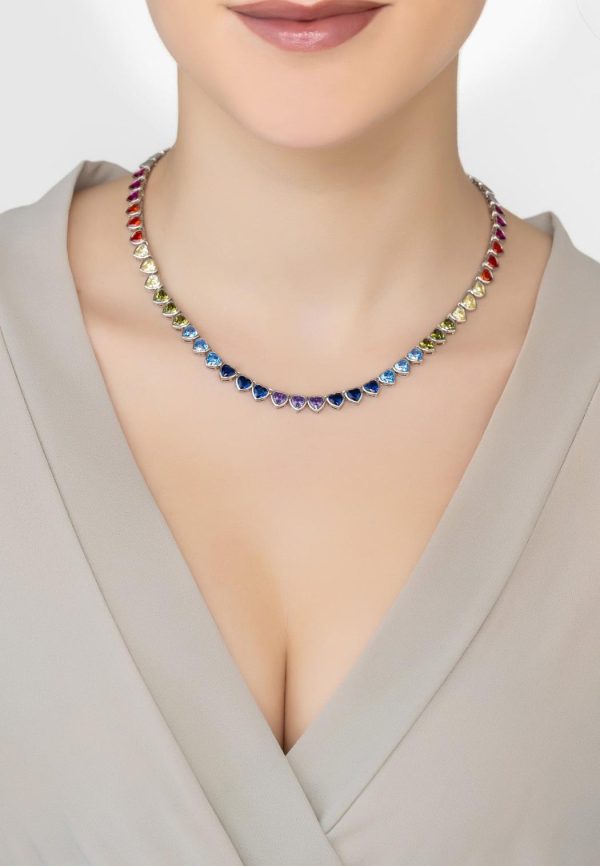 Meet our Heart Garland Rainbow Gemstone Necklace—the ultimate blend of love and colour. Made from quality 925 sterling silver, this unique necklace is a real showstopper.